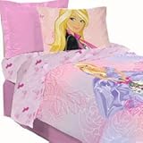 Everything's coming up roses for Barbie! Match her room to her personality with this cute full-sized, cotton-rich comforter. In soft pinks, whites, and purples....and images of her favorite friend, Barbie....she'll be begging for bedtime! Fits full size beds Measures 76" x 86" Filling: 100% Polyester Cover: 60% Cotton - 40% Polyester Machine wash and dry