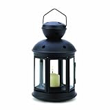 Quaint colonial styling and a sleek, modern matte black finish make this lamp a winning addition to your décor. Your favorite votive candle looks lovely at center stage behind six clear glass panels; just the right accent to make any evening into a special occasion. Candle not included. Iron and glass. 5-inch diameter x 9 1/2-inch high. A perfect complement to your indoor or outdoor décor Suitable for hanging or use as a freestanding lamp Made with iron and glass Makes a great gift for you or someone else Charming accent for around your home