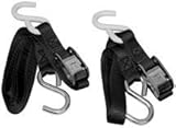 Epco Pwc Tie Down 1"X7'. Black, 1'' wide weather-resistant nylon webbing and self padded handle, quick lock buckle w/spring loaded lock and push-button release. Sold in pairs. PWC7BK: 3 vinyl hooks & adjustable webbing clip.